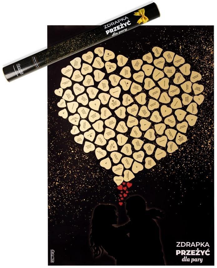 Zdrapka Przeżyć dla Pary to wymarzony prezent na Walentynki lub rocznicę, bo szybko się nie znudzi. Dzięki niej święto miłości będzie trwać cały rok! Przeżycia na zdrapce zostały skonstruowane tak, by pobudzały wyobraźnię i tworzyły piękne wspomnienia, które z przyjemnością przywołacie po latach. Wiemy też, że apetyt rośnie w miarę jedzenia, więc nawet jeśli zdrapiecie już wszystkie złote pola, plakat zdecydowanie rozbudzi Waszą kreatywność i nawet po latach będzie świetną inspiracją do planowania kolejnych ekscytujących, wspólnych przeżyć.
