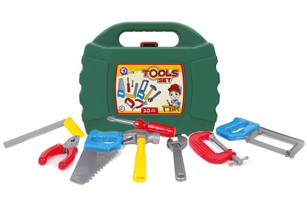 Naszym małym klientom oferujemy prawdziwy zestaw narzędzi, który ma każdy dobry mistrz. Swoją drogą, gdy tata zobaczy narzędzia w rękach dziecka, od razu pomyśli o kranie, cieknącym w kuchni, o którym mama kilka razy mu przypominała, i wreszcie pójdzie i naprawi kran , podczas gdy dziecko jest zachwycone i otrzymuje świetną lekcję.