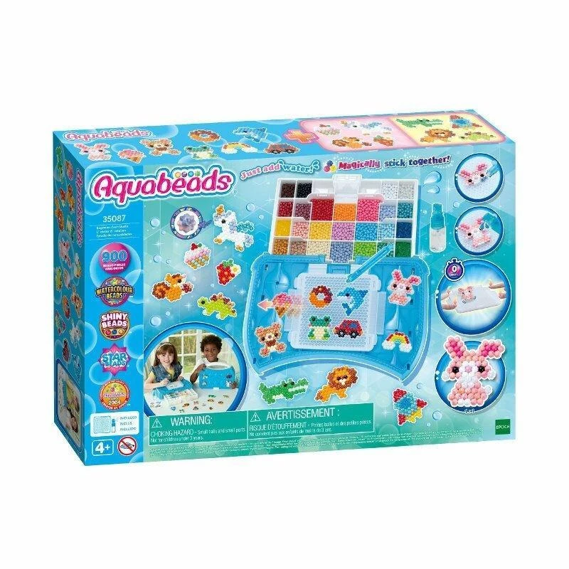 Wspaniała kreatywna zabawa z koralikami Aquabeads dla dzieci i dorosłych! Zestaw zawiera 900 koralików, z których można stworzyć mnóstwo wyjątkowych figurek i przedmiotów. Koraliki Aquabeads połączą się w magiczny sposób po spryskaniu wodą. Aquabeads, to bezpieczna zabawa bez kleju, bez nożyczek i bez żelazka! Kompletny zestaw zawiera wszystko, co jest potrzebne do zabawy: 900 koralików w 25 kolorach, paletę do tworzenia z nowoczesną tacką do układania koralików, wygodną szkatułkę do przechowywania i transportu, aplikator, spryskiwacz, zaczepy do mocowania gotowych kreacji oraz szablony. Prawdziwą atrakcją jest paleta z nowoczesną tacką do układania Pop-Up. Teraz koralikowe dzieła można tworzyć bez przerwy! Gotową kreację można zdjąć z tacki od razu po spryskaniu koralików wodą! Wystarczy lekko nacisnąć tackę, odłożyć kreację do wyschnięcia i tworzyć dalej. Poznaj oryginalne koraliki Aquabeads wyprodukowane przez japońską firmę EPOCH. Wyobraźnia, kreatywność, sztuka, zabawa i rozwój. Polecamy od 4 roku życia.